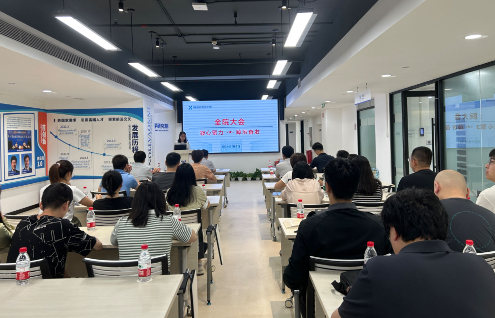 7月1日上午,国际前沿交叉科学研究院(以下简称“国交院”)在柏彦大厦六层多功能厅召开全院大会,学习宣贯学校第十七次党代会精神,开展教师培训,做党纪学习教育专题党课并宣贯学校警示教育大会精神。会议由副院长孔娟主持,全院教师参加本次会议。