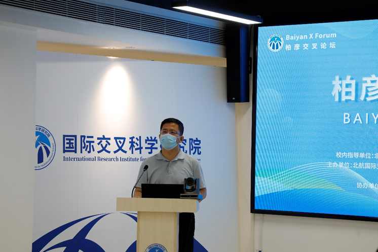 北航化学学院刘明杰院长主持本次论坛,校长助理、科研院杨立军院长,人力资源部张义部长出席并致辞。国交院赵老师介绍北航国交院和柏彦交叉论坛基本情况,30余位相关领域研究人员以线上、线下相结合的形式参会。国交院常务副院长陶飞、副院长孔娟出席了会议。