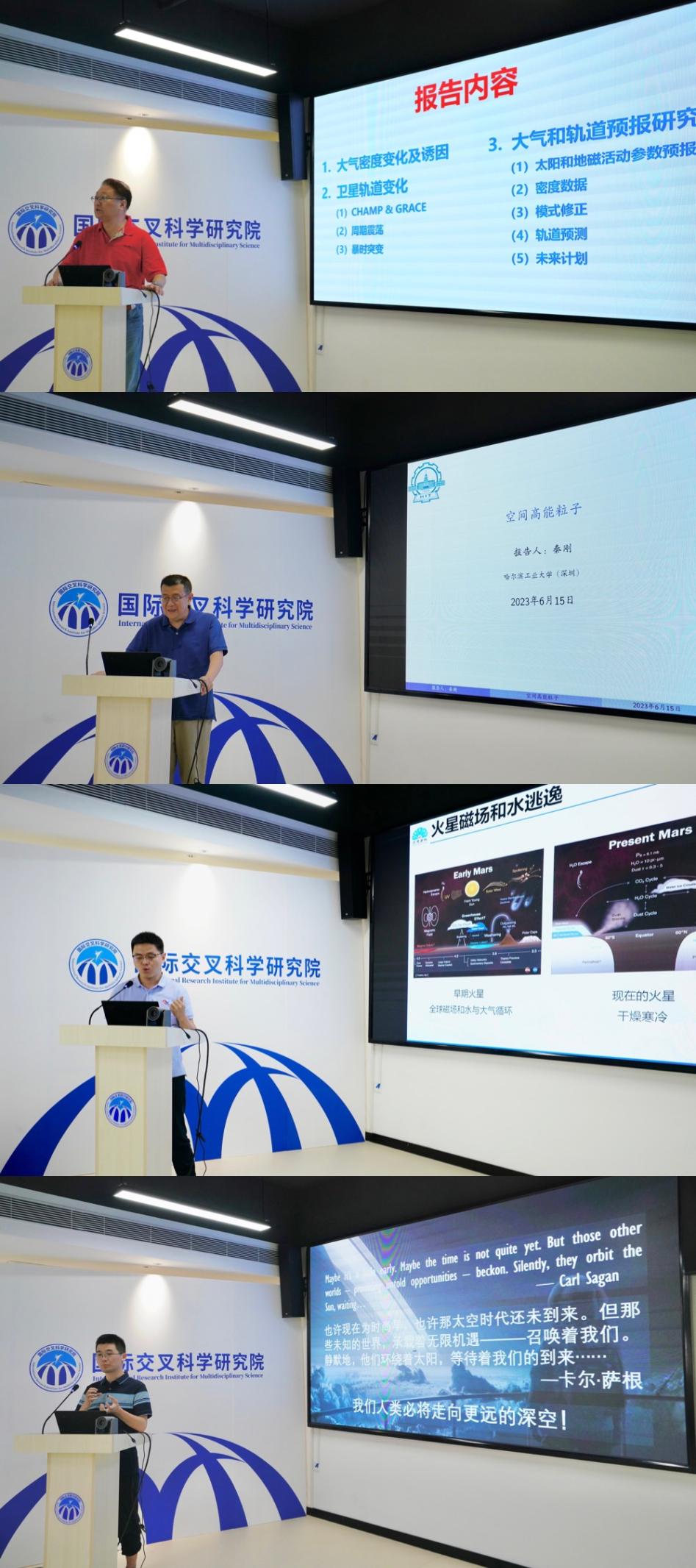 During the scholars' report session, Jiyao Xu, the researcher from the NSSC andtherecipient of The National Science Fund for Distinguished Young Scholars, explained the research on the influence of solar and geomagnetic activities on upper atmospheric densities and orbiting satellites. He alsoshowed the expectations for the progress and objectives of the Meridian Project (Phase II). Professor Gang Qin of HIT, the recipient of the National Science Fund for Distinguished Young Scholars, presented the research on high-energy particle modulation phenomena in the heliosphere of anomalous and Galactic cosmic rays, and the study of high-energy particles in the heliosphere on the acceleration and scattering mechanism of particles. Mingyu Wu, the academician at the IAA, senior researcher at the IWF, and the associate professor ofProf.Tielong Zhang's research team from HIT, shared his research on the magnetic field structure in the Martian environment. Starting from the investigation of Mars and the magnetic field configuration, he delved into the formation of magnetic structures such as magnetic holes and current sheets observed in the Martian environment. Dr.BinChengof Tsinghua University brought us a report on particle dynamics in the detection and defense of small celestial bodies. He said that small celestial body detection wouldbe a crucial part of the next decade for understanding the galaxies and emphasized the numerical modeling of small celestial bodies and the advancements in the evolution of small celestial bodies in the simulated solar system.