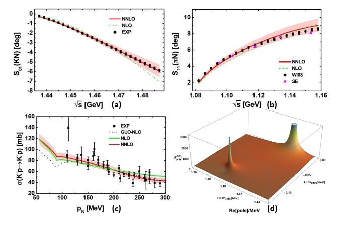然而,截止目前,理论物理学家尚不能对低能区不同奇异数重子-介子相互作用给出统一的描述。一个典型的例子是重子-介子散射过程中的重子共振态,Λ(1405)。这个共振态不能被传统夸克模型所描述,但可以被解释成KbarN分子态,并且具有独特的双极点结构,被认为是第一个现代意义的“奇特强子态”,因而吸引了理论物理学家的广泛关注。