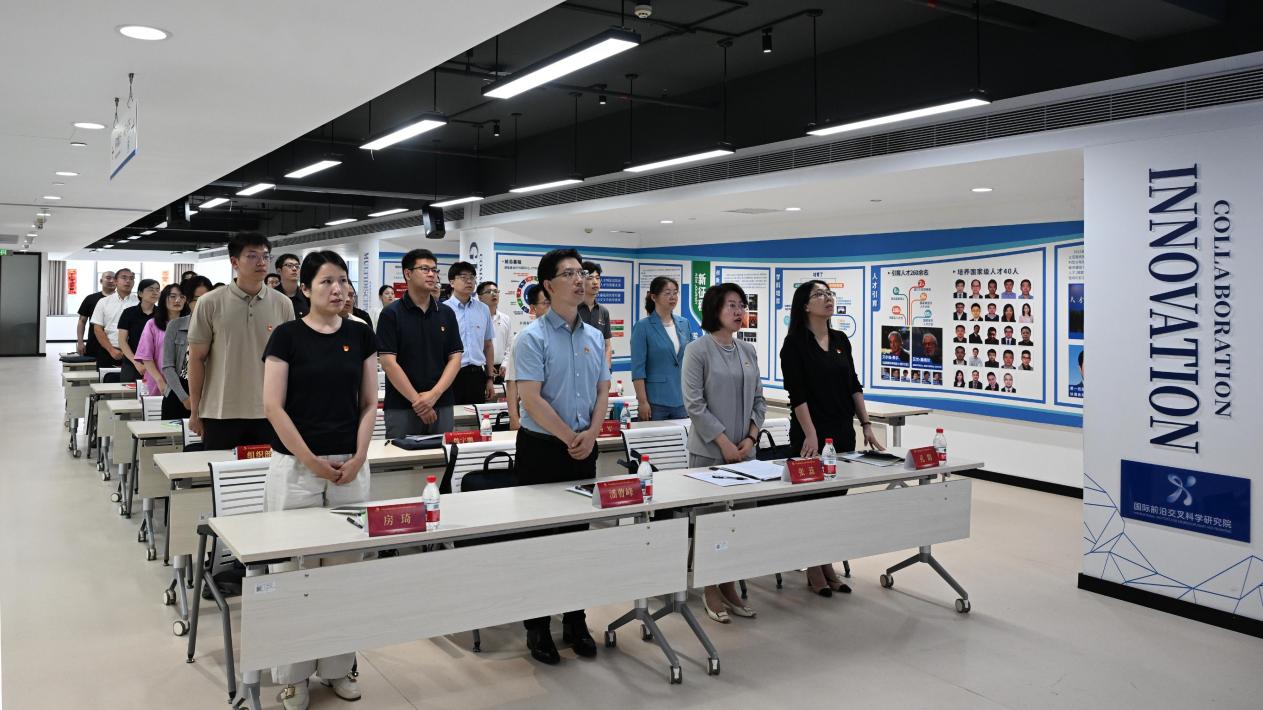 6月18日,中共北京亚洲成人在线一二三四五六区国际前沿交叉科学研究院(以下简称“国交院”)党员大会在柏彦大厦6层多功能厅召开,国交院党委全体党员参会,专职组织员孙振佳主持会议。