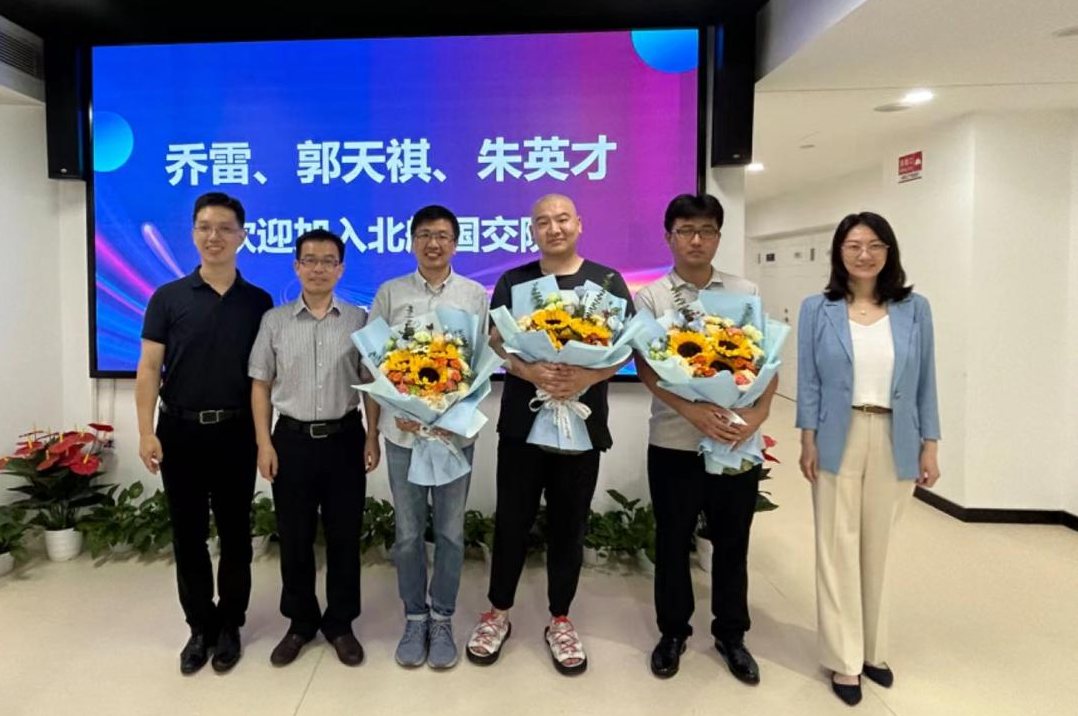 随后党委书记王菲、院长陶飞为三位老师献花,希望三位老师能快速融入国交院大家庭,可以尽快适应新环境,在各自领域多开展前沿交叉合作与研究,助力北航学科交叉成果持续产出。全体教职工对三位教师的加入表示热烈祝贺和欢迎。